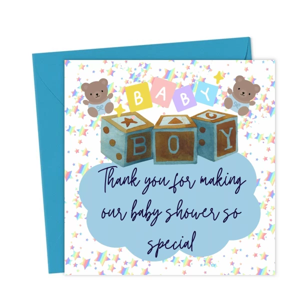 Baby Boy Baby Shower Thank You Card UK – Blue Stars Teddy Bear