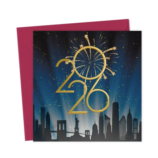 New York Skyline 2026 Card – Fireworks Celebration Greeting