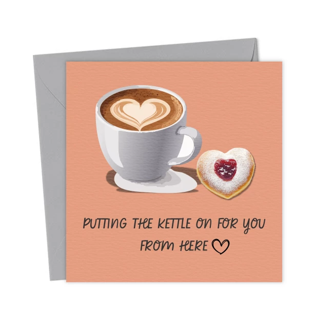 Thinking of You Card – British Cuppa & Jammie Dodger Illustration